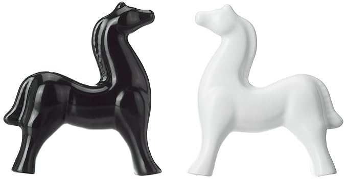 Home Decor White and Black Resin Horse Figurines – (Pack of 2, Black & White)